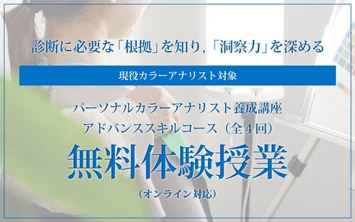 福岡天神のカラースクール、エクスカラーでは根拠のあるパーソナルカラーの理論とスキルをお伝えしています。秋から学び直しの方対象のアドバンススキルコースを解説、8月はその無料体験授業、説明会を行います。